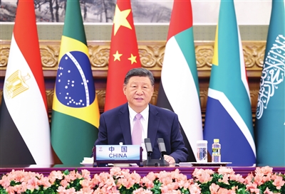 习近平指出,当前,世界百年变局加速演进,霸权主义、单边主义、保护主义甚嚣尘上。金砖国家作为全球南方第一方阵,要坚持弘扬开放包容、合作共赢的金砖精神,共同捍卫多边主义,维护多边贸易体制,推进“大金砖合作”,携手构建人类命运共同体。