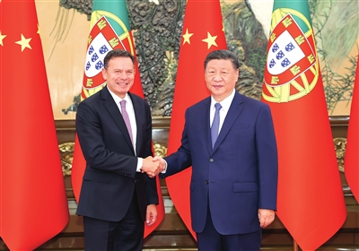 习近平指出,中国和葡萄牙都是历史底蕴深厚的国家,两国人民都拥有开放包容、进取自主的精神特质。双方通过友好协商妥善解决了澳门问题。近年来各领域合作取得重要成果,树立了不同社会制度、不同国情国家相互尊重、互利共赢的典范。今年是中葡建立全面战略伙伴关系20周年。中方愿同葡方加强战略沟通,把握双边关系正确方向,让中葡关系好上加好,以团结合作为两国和世界繁荣进步作出更大贡献。双方要赓续传统友好,相互信任、相互支持。深化发展战略对接,拓展创新、绿色、海洋、医药等领域务实合作,发挥澳门独特桥梁作用,用好中国-葡语国家经贸合作论坛等机制,实现更高水平互利共赢。鼓励文化、教育、旅游、科研领域交往,深化人文交流。国际形势越是变乱交织,中欧越要加强沟通、增进互信、深化合作。希望葡方同中方一道,坚持中欧伙伴关系定位,推动中欧关系持续稳定健康发展。