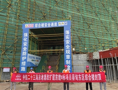 日前,中铁二十三局承建的京港澳改扩建房建4标项目蔡甸东区综合楼成功浇筑,标志着京港澳项目湖北北段最大的综合楼主体结构封顶,为后续施工打下了坚实基础。