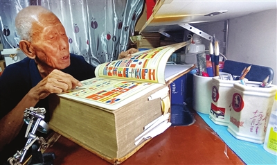 读书是老人的爱好,尤其是自己的藏书,一本《韋氏大词典》让老人对英语产生了浓厚的兴趣。