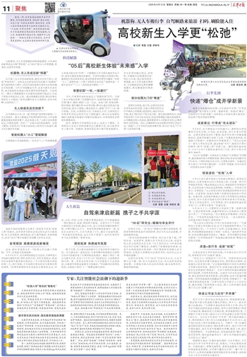 2025年高校迎新季正在展开,校园里不仅有“轻装上阵”的新生,还有更多反映社会变迁的生活方式新选择:有人自驾报到,顺带旅游;有人提早抵津,先熟悉城市;也有“00后”携手结婚后共同踏入研究生生活。
