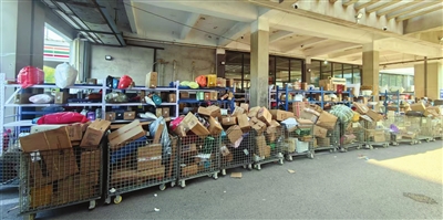 为应对“包裹潮”,天津商业大学推出“行李驿站”专项服务,提前规划申请大件摆放场地,增设货架;营业时间提早至7时30分,下班时间延长至21时,方便新生取件。快递站负责人表示:“开学季大量出现‘一人多件’的现象,有学生甚至一次性寄来10余个包裹。”