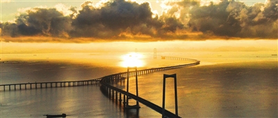 珠江口伶仃洋上,深中通道沐浴在晨曦之中,长虹卧波、美不胜收。