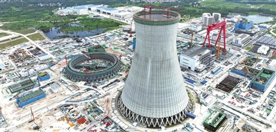 9月17日,中国首个采用海水二次循环冷却技术的广东廉江核电项目,顺利完成超大型高位集水海水冷却塔主体结构施工,即将全面进入设备安装与系统调试阶段。 新华社发