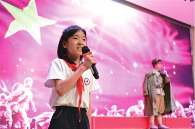 在精彩的话剧表演环节,“杨靖宇”和“李大钊”走上舞台,与孩子们进行了一场穿越时空的对话。“杨靖宇”面对小学生的提问,坚定地表达了抗日决心,彰显出伟大的英雄气概;“李大钊”对社会主义道路的坚定信仰,以及与当代学生的对话,让大家深刻感受到先辈们对国家未来的期望。学生们纷纷许下承诺,绝不辜负先辈的热血。