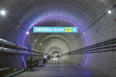 9月22日,在浙江省宁波与舟山间的金塘水道海平面下65米深处,国产超大直径盾构机“甬舟号”掘进里程突破2470米,标志着甬舟铁路金塘海底隧道宁波侧掘进过半,隧道建设取得阶段性进展。甬舟铁路金塘海底隧道西起浙江宁波市北仑区,东至舟山市金塘镇,全长16.18公里,是世界最长海底高铁隧道。 新华社发