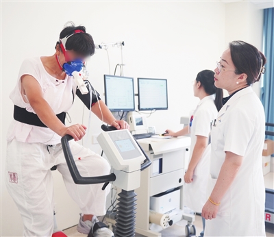 赵英宏:这是一个常见的误解。CPET其实是一项非常专业的功能性检测。患者在专业监护下,佩戴呼吸面罩和心电设备,在跑步机或功率车上逐步递增运动强度,从静息到极限状态。监测过程中,设备会实时采集分析20多项生理指标,核心监测三大领域:一是肺的通气换气功能,包括最大摄氧量VO2max、呼吸交换率RER、氧脉搏(O2Pulse)等;二是心脏的泵功能,捕捉运动诱发的心肌缺血、心律失常和血压波动,如果达到报警值会及时终止测试;三是运动耐力阈值,精准定位无氧阈AT值,为制定安全运动强度提供依据。最终生成个性化的“身体功能评估报告”,就像给身体做了一次全面的“压力测试”。这是任何单一系统的检查都无法比拟的。它在疾病的功能评估、鉴别诊断、预后判断和运动处方制定方面具有重要的价值。