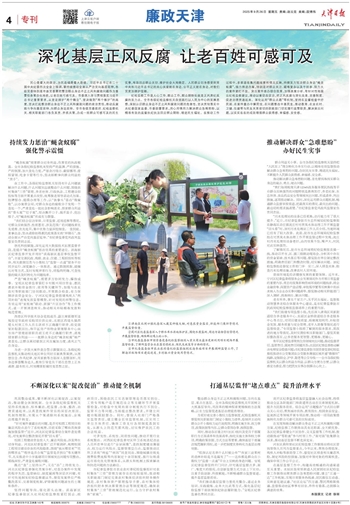 南开区纪委监委将基层监督融入社会治理,持续推动全区各职能部门和街道常态动态完善制度机制,提升为民服务质效。综合运用“点题整治”方式回应群众关心关切,聚焦城市供热、教育招生、校园食品安全、征地拆迁等领域开展专项治理,推动将一项项政策措施转化为群众可感可及的实际成效。