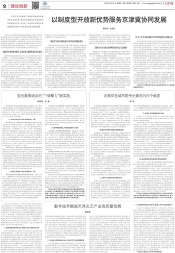 文化的跨界融合,是传统与现代的对话,让传统的文艺与前沿的科技相遇,让历史的厚重与未来的灵动相拥。跨界融合为文化注入新的生命力,使其在传承中创新,在创新中传承。“数字+文博”是以文惠民的重要载体。一件件文物可以通过数字技术打开沉睡的记忆,赋予其鲜活的生命。例如通过数字技术“云”游天津博物馆的文物海洋,感受历史的文脉,漫步于周恩来邓颖超纪念馆,追寻伟人的足迹;打造“云观展”等数字平台,体验中华上下五千年文明的波澜壮阔,增强民族自豪感与自信心,让文博资源活在当下,服务人民。“数字+文旅”是以文兴业的重要路径。天津应坚持以文塑旅、以旅彰文,可以打造“津门故里”“运河故事”等沉浸式剧场,融合实景演出、全息投影等技术再现老天津卫市井生活、运河繁忙景象;积极探索文旅商融合的数字文旅新业态,推出数字文旅线路,为游客提供智能导览与导航,推动历史文化遗产、生态景观、商贸综合体等串珠成链,串链成片,实现“吃住游娱购”的多元消费。“数字+文教”是以文化人的重要举措。将人工智能技术融入校园,打破传统课堂边界,构建智慧校园、智慧管理、智慧服务的全方位教育体系,开设人工智能课程,实现虚拟现实教学,依托世界智能大会、世界智能产业博览会等,重塑教育新生态。“数字+文娱”是以文润城的重要方法。应积极推进公共文化服务数字化建设,让人民畅享优质文化服务,提升精神文明生活;打造天津音乐节、戏剧节、相声节、民俗文化节等数字文化创意产品,讲好天津故事,树立城市口碑。