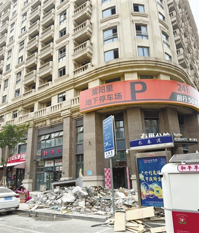 有巢公馆楼下,大量建筑垃圾露天堆放。