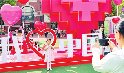 图1 国庆中秋假期,和平区民园广场及周边设置多组“我爱中国”主题美陈,吸引众多游客拍照。
