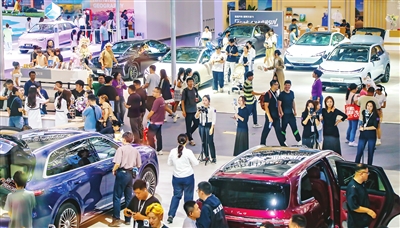 今年9月,许多汽车品牌集中发布了新车,在此次中国天津国际车展中,观众也可以一睹这些“新秀”的风采。“我们带来了24台车,包含燃油、混动和纯电产品。”在奇瑞汽车的展台前,该品牌天津区域经理张鑫宇向记者介绍,“这台‘风云T11’是9月开始预售的混动SUV(运动型多用途车),还没有正式上市,也是第一次在天津展出,希望利用假期的时机让更多观众看到我们的实车,更好地推广这款新车型。”