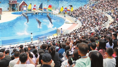 假期,天津极地海洋公园吸引不少京津冀游客到此游玩,观赏海洋动物。