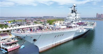 天津泰达航母主题公园,退役军舰飒爽英姿和磅礴气势吸引大量游客。