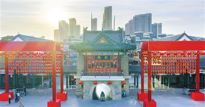 国庆中秋双节至,南开区古文化街大红灯笼高高挂起,盛装迎接国内外的游客。