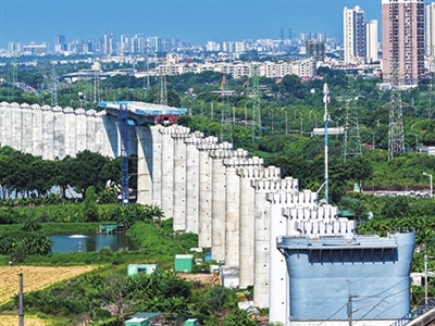 “双节”期间,驻津央企中国铁建大桥局参建的深江铁路施工现场热火朝天、墩柱林立,建设者正全力推进跨彩虹大道连续梁等关键控制性节点建设。
