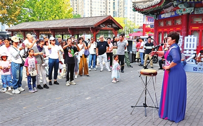 天津市曲艺团在古文化街官银号前举办曲艺展演。