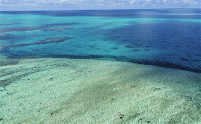10月2日拍摄的黄岩岛礁盘与潟湖。 新华社发