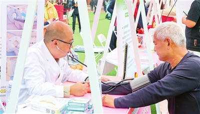 昨日,2025年天津市“敬老月”活动启动仪式在和平区民园广场举行。图为市民现场接受义诊服务。