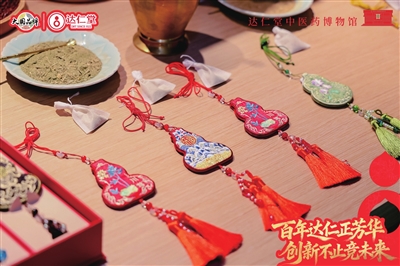 博物馆以丰富业态构建大健康生态体系:药品专区汇集速效救心丸、安宫牛黄丸等经典国药,打造“可带走的健康守护”;空间视觉体系融合东方美学与现代设计,构建“可感知的博物馆”体验;香囊手作区推出六款主题配方,还原传统制作技艺,让中医药文化“可体验、可触摸”。此外,馆内还设有餐饮体验区、烘焙区等功能空间,全面展现中医药融入现代生活的多元场景。