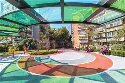 记者从市城管委获悉,河西区天塔街育贤里口袋公园提升改造项目日前完工并投入使用,此次提升改造面积约4505平方米,增设景观廊架、环形跑道、健身器材、适老座椅等,为居民打造多功能复合生活空间。记者 吴迪 摄