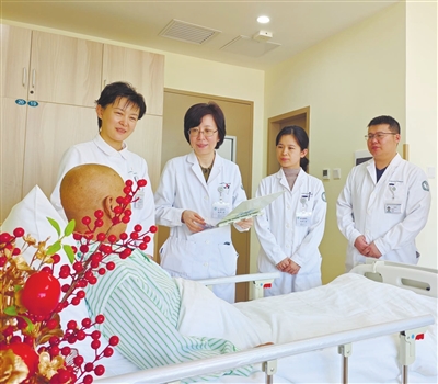 刘东颖(右三)与团队成员在查房。