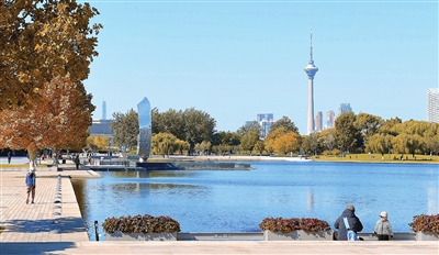 昨日天气晴朗,天津文化中心天蓝水清。市民漫步其间,尽享悠闲时光。 记者 孙立伟 摄