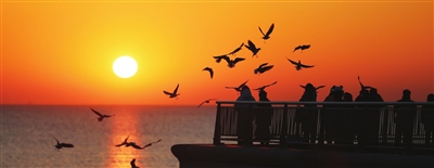 目前我市已迎来候鸟迁徙高峰。清晨的东疆亲海公园,成群鸟儿与游人互动,伴着海岸线上冉冉升起的太阳,形成独属于天津的生态画卷。 记者 刘欣 摄