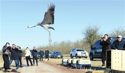 “这次我们共放飞了13只被救助的候鸟。其中,1只白枕鹤、2只东方白鹳属于国家一级保护动物,2只灰鹤是国家二级保护动物,还有8只‘三有’保护动物。这些鸟类在迁徙途中受伤掉队,被热心市民发现后送到了市野生动物救护中心。经过专业团队的精心照料,它们已恢复健康,达到野外放归标准。”市野生动物救护中心高级农艺师刘洋介绍。