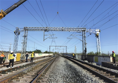 11月18日,由中铁二十三局电务公司承建的新建驻马店物流基地二期项目,武汉铁路局京广线马庄站经过45分钟三级封锁施工,顺利完成接触网改造硬横梁安装,为后续开通打下坚实基础。据悉,该项目计划于2026年竣工,建成后货物年发送量将增加30万吨,结合铁海联运的政策,将进一步提高铁路运量,带动周边经济发展。 图 孟铃棋 文 张立东