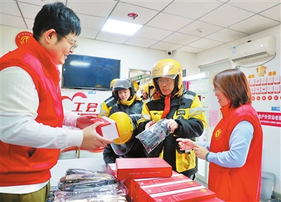 日前,红桥区芥园街道总工会携手世春里社区24小时户外劳动者驿站,共同举办一场面向外卖骑手等新就业形态劳动者的专项暖心活动。 记者 孙立伟 摄