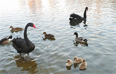 王巍炜还向记者介绍,水上公园的红莲岛是我市市内为数不多的“非人工干预生态岛”,一般情况下,员工不会干预岛上鸟类的生存情况。另外,设置水泵的措施也要考虑不影响湖内的底栖动物。对于投喂,园方秉持科学适度的原则,因为过度投喂会影响游禽尤其是雏鸟的生存能力。游人轻易不要触摸黑天鹅雏鸟,因为雏鸟一旦沾染人类的气味,有可能会被父母排斥、遗弃甚至伤害。