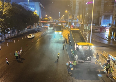 据介绍,4个市容环境治理工程累计完成路面施工47.19千米,共完成铣刨作业8.4万立方米,沥青摊铺172.8万平方米,地袱修复16.7万平方米等。施工高峰时期,投入设备578台套,参建人员达1207人。在集团的统筹协调下,公司主要负责同志靠前指挥,多次深入十一经路、南京路、卫国道等重点施工现场,扛起第一责任人职责;将党支部建在项目上,让党旗飘扬在施工一线,60余名党员主动亮身份、践承诺,在重难点岗位率先垂范,凝聚起攻坚克难的强大合力。