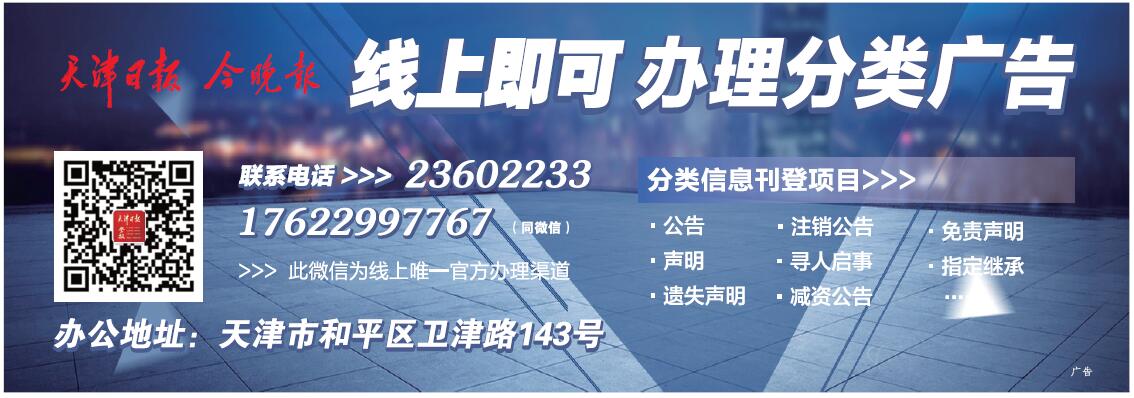 天津日报报业集团所属10报2刊所有作品,版权均属于天津日报报业集团,受《中华人民共和国著作权法》的保护。所有关于天津日报报业集团及其子报子刊内容产品的数字化应用,包括但不限于稿件签约、网络发布、转稿等业务,均需与天津日报报业集团商谈,与天津日报报业集团有互换稿件协议的网站,在转载数字报纸稿件时注明“来源-天津日报报业集团-XX报”和作者姓名,未与天津日报报业集团有协议的网站,谢绝转稿,违者必究。