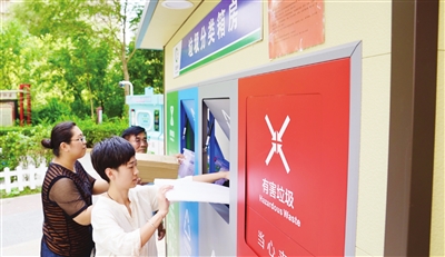 “小区垃圾分类箱房落地之前,社区就开展了室内垃圾分类知识讲解以及室外垃圾分类实地宣传活动,落地后居民如果对垃圾分类有不清楚和不会投放的情况,有督导员现场引导。”在社区值守的垃圾分类宣传员孙烨介绍说,“让无用的垃圾变身为居民账户中的‘碳币’,最近开展的‘碳币’兑换桶装饮用水活动,既为辖区居民生活提供方便,又增加了群众参与垃圾分类的积极性,目前居民基本都能正确分类投放。”
