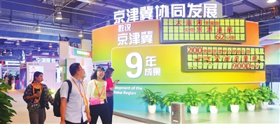此外,京津冀展区内还展示了天津在推动实施“十项行动”、培育建设国际消费中心城市、建设天开园等方面的举措和成果。