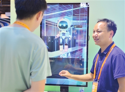 国家超级计算天津中心展出的“天河·行影”多模态融合交互系统。 本报记者 胡凌云 摄