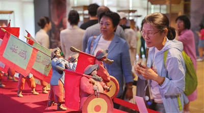 此展展出了泥人张创始人张明山、第二代张玉亭及第六代张宇六代名家的作品共计38件(套),其中有《余三胜》肖像、《钟馗嫁妹》《吹糖艺人》《木兰从军》《鲁迅》《紫气东来》《忠义千秋》等,通过书籍、视频影像等资料,生动形象地展示六代传承的御匠世家,感受非遗瑰宝。