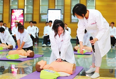 “把急救知识培训作为新生的‘开学第一课’是我校传统,每年都培训千余人次学生。急救知识培训不仅关乎生命安全,更是对医学精神的传承。尽早掌握心肺复苏技术和使用自动体外除颤器的方法技巧等救命技术,不仅能提高学生在突发事件和意外伤害事故中的应急处置和自救互救能力,也是给刚入学的大一新生开设的第一堂专业课程思政课,是对医学职业精神与人文精神的双重锻炼。”此次活动相关负责人、天津医科大学学工部张诗晨说。