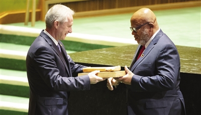 当天早些时候,第77届联大闭幕。第77届联大主席克勒希致辞,弗朗西斯宣誓就任新一届联大主席。