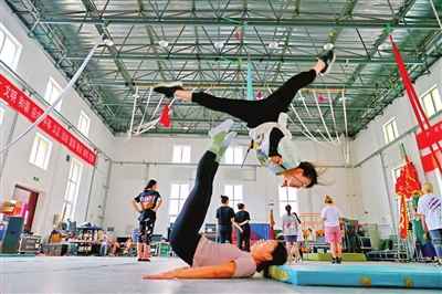 杂技是什么?是轻巧灵动的上下翻飞,是矫健柔韧的力量与美,是惊险奇绝博得掌声如雷。杂技是什么?是排练场上的汗水泪水,是日复一日的不言苦累,是观众的赞叹令疲惫消退。三伏天儿,排练场,市杂技团演员成群结队,挥汗如窗外雨水。这边厢,“旋转技巧”悬挂头颈让身体快速旋回,变幻的流线令人沉醉,更让普通观者感到一丝险危。那边厢,“蹬转毯”长时间保持造型,略显枯燥却显功力。杂技人说:重复的技巧练习每日与我们相伴相随,因为只有这样,才能保持表演状态与艺术生命,即使已是不惑的年岁。三伏天儿,排练场,有保留节目的传承,如刚柔相济的“肩上芭蕾”;也有新编节目的创排,如加入新玩法的“魔方技巧”三人搭配;还有彰显丝路文化的“双人单手倒立”,呈现敦煌壁画中的婀娜柔媚。杂技人说:讲好中国故事,以杂技为媒,也让古老技艺变得更有韵味。三伏天儿,排练场,硬件设施改造得越发舒适到位,令演员们更好地投入训练、成果增倍。这里写满刻苦和艰辛,但也有欢笑与喜悦的聚会。杂技人无言,却用不断挑战极限的身体呼喊着:中华杂技,世界光辉;源远流长,责在我辈!