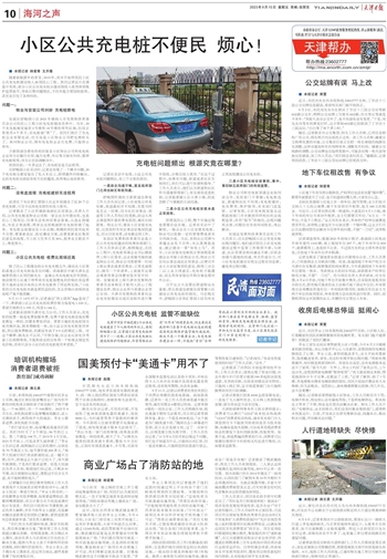 先有宁河区宁福花园5个公共充电桩建在了个人租用的车位上,再到舒畅园小区、汇景园小区有充电桩却用不了……近期,小区公共充电桩从建设到维护问题频出,尽管有物业公司“不作为”的因素在内,但主要还是政府部门在整个充电桩从选址到建设再到后期维护监管缺位造成的。物业只是一个服务企业,与充电桩承建企业一样,不能把“责任”全部寄托在以营利为目的的企业身上。政府部门要在其中发挥主导、协调、监管的责任,确保充电桩建设合理合法,后期维护及时到位。主管部门也应进一步加大行业监管力度,让小区居民能在家门口享受到舒心的充电服务。