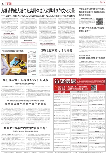 天津日报报业集团所属10报2刊所有作品,版权均属于天津日报报业集团,受《中华人民共和国著作权法》的保护。所有关于天津日报报业集团及其子报子刊内容产品的数字化应用,包括但不限于稿件签约、网络发布、转稿等业务,均需与天津日报报业集团商谈,与天津日报报业集团有互换稿件协议的网站,在转载数字报纸稿件时注明“来源-天津日报报业集团-XX报”和作者姓名,未与天津日报报业集团有协议的网站,谢绝转稿,违者必究。