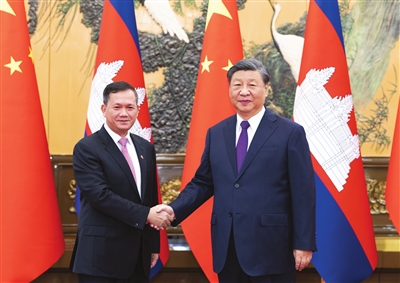 习近平指出,洪玛奈首相就任后选择中国作为第一个进行双边访问的国家,充分体现了柬埔寨新一届政府对巩固和发展中柬友好的高度重视。中国和柬埔寨是铁杆朋友。建交65年来,双方始终高度互信、平等相待、互利双赢,始终坚定支持对方维护国家主权、安全、发展利益,这是中柬命运共同体的核心要义。今年,双方开启建设高质量、高水平、高标准中柬命运共同体的新时代。中方愿同柬方一道,推动中柬命运共同体建设走深走实,携手打造构建人类命运共同体的典范。