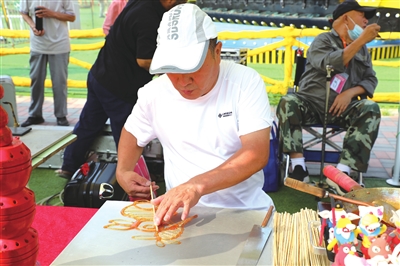 一米长的冬瓜、新品种白菜、香喷喷的把子肉……各色农产品纷纷摆上展台,在展示北辰区农民丰收喜人成果的同时,也有效促进了产销对接、提升了品牌形象,推动北辰区特色农产品高质量发展。不仅如此,青盛河畔农庄还组织了文艺汇演、稻田画展示、果蔬采摘、钓螃蟹、农作物收割等极具特色的丰收活动,在满足市民游园赏景、购买绿色农产品的基础上,为游客提供参与性强、娱乐性高的互动体验活动,共享丰收喜悦。