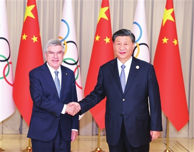 习近平强调,中国一贯重视发展体育事业,积极参与国际奥林匹克事务,践行“更快、更高、更强──更团结”的奥林匹克格言。去年中国克服新冠疫情等挑战,向世界奉献了一届“简约、安全、精彩”的北京冬奥会,北京成为全球首个“双奥之城”。中国传播奥林匹克精神的脚步永不停歇,愿同国际奥委会一道,坚持体育非政治化原则,充分利用北京冬奥会遗产,为推进奥林匹克事业和构建人类命运共同体作出新的更大贡献。目前,杭州亚运会的准备工作已经就绪。中国政府和中国人民完全有信心呈现一届“中国特色、亚洲风采、精彩纷呈”的体育盛会,为推动奥林匹克运动发展、促进亚洲人民团结和友谊作出新的贡献。