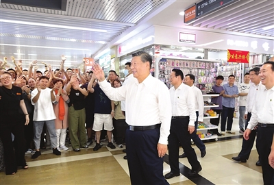 随后,习近平来到义乌国际商贸城考察。他通过电子屏幕实时了解商贸城运营及“义新欧”班列运行情况,并走进市场同商户、小企业主代表亲切交流,详细询问市场行情。他强调,义乌小商品闯出了大市场、做成了大产业,走到这一步很了不起,每个人都是参与者、建设者、贡献者。商贸城要再创新辉煌,为拓展国内国际市场、畅通国内国际双循环作出更大贡献。