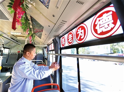 近日,市公交集团22条“敬老服务线”投运,车上统一安装了敬老服务袋,内有打包绳、老花镜、清凉油、乘车指南等,为老年人乘车提供方便。 本报记者 张磊 通讯员 范超 摄