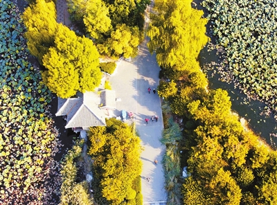 我市北宁公园林木绿叶渐黄,秋景如画。 本报记者 孙立伟 摄