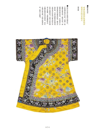 故宫所藏衬衣约1100件,时代标有雍正、嘉庆、道光、同治和光绪,很多衣服和布料都标注着交回敬事房的收藏日期,准确制作年份应该会更早。如乾隆时的“绛红地勾莲蝠织金缎夹袍”和“月白色织彩花卉蝶织锦夹袍”,这些长服是舒袖衬衣。书中说,有衬衣特征的最早实物是在道光时期,织造沿袭暗花面料的传统,仍以素色为主,为挽袖衬衣。道光后则缂丝衬衣居多,其他还有织金缎,妆花面料则没有。同治、光绪时期宫中追求个性时尚,氅衣、衬衣用量很大,此时衬衣各色彩绣和缂丝并重,除舒袖衬衣外,还出现了半宽袖衬衣。这种衬衣形式接近氅衣,袖长及肘,有单层或多层袖口,在宫藏衬衣中占比较大。
